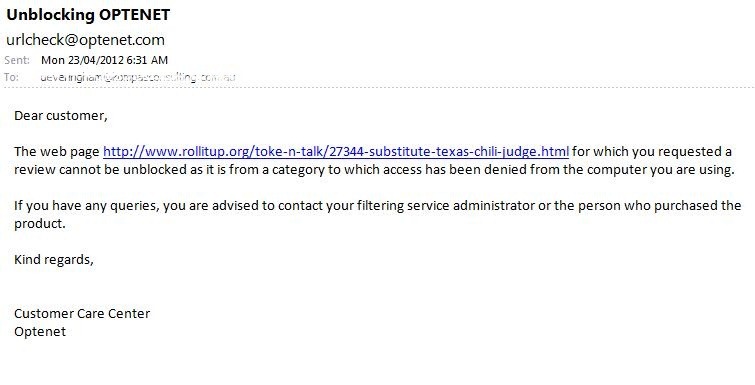 I was sent a link to web site a few days back about a guy who was asked to judge a chili (food) competition in Texas.  The story was a joke and a very good one at that.  When I finally got around to reading it, I was nearly ill with laughter.  Try reading it to a group of people!  But when trying to open the website in the Qantas Lounge, I received a redirect to the Optus security gateway aka the profanity filter.  I had hit upon a “restricted category”, humor!  Now I wonder how the likes of Kevin “Bloody” Wilson, Eddie Murphy and Will Anderson cope!
